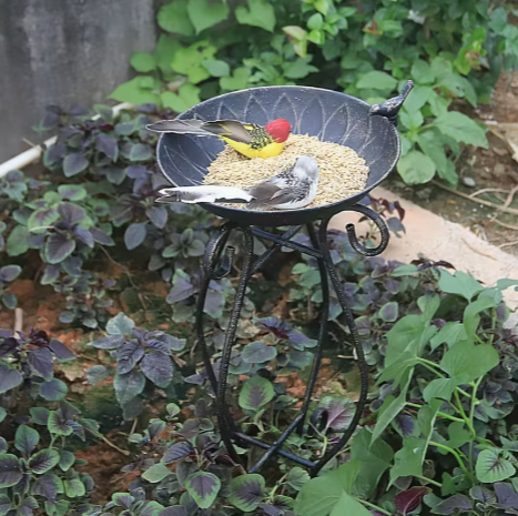 Dekoratiivne ja praktiline söötja metsikutele lindudele, sobib ideaalselt aeda, hoovi või terrassile. Stabiilne metallist alus elegantsete detailidega tagab vastupidavuse ning lai kausikujuline alus võimaldab mugavalt panna seemneid, teri või muud sööta. Söötja meelitab linde ning on ka ilus aiakaunistus.
