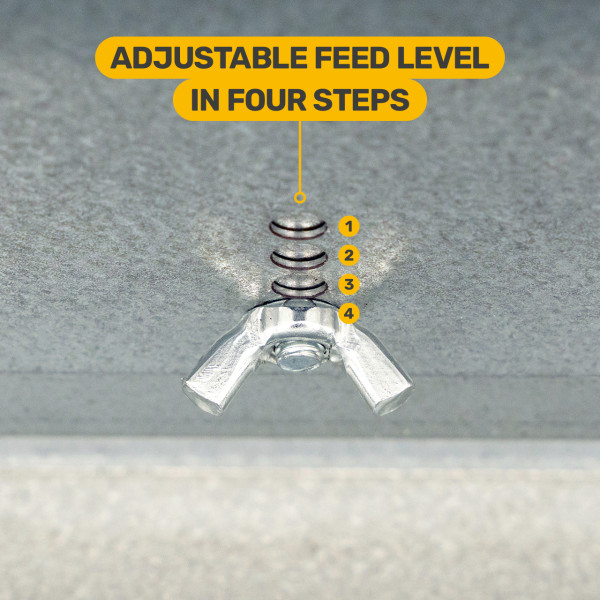 Lihtne sööda taseme kontroll läbipaistvate UV-kindlate külgpaneelide kaudu