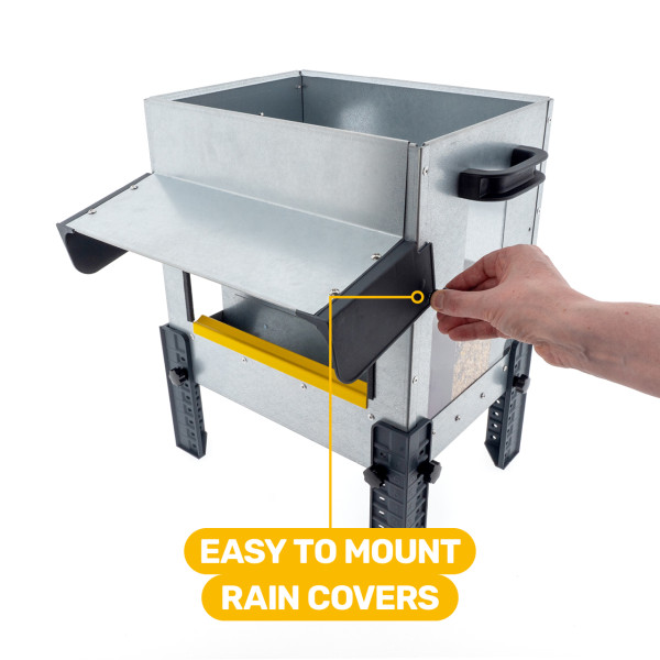 Sile pritsmekaitseriba aitab vähendada sööda kadu ja hoida söötmiskoha puhtana. Komplekti kuuluv vihmakate võimaldab sööturit mugavalt kasutada ka õues – sööt on kaitstud sademete ja niiskuse eest.