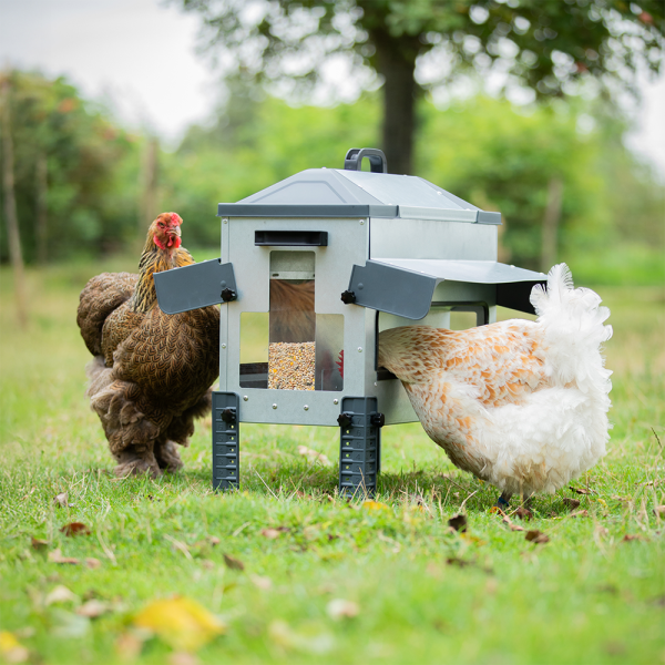 Kahepoolne konstruktsioon tagab karjale üheaegselt vaba ligipääsu söödale, mistõttu sobib see suurepäraselt nii taludesse kui ka suurematele linnukarjadele.